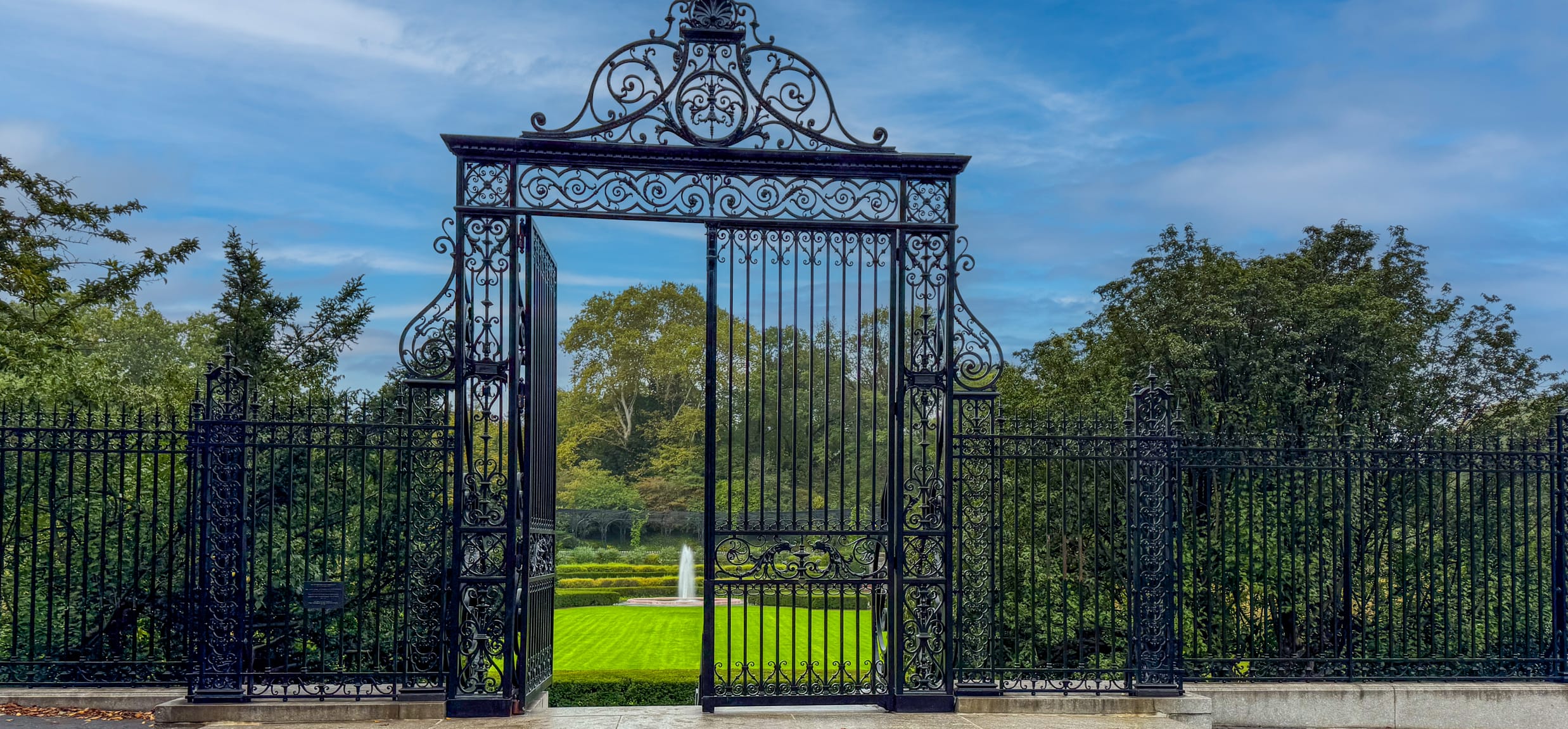 The Vanderbilt Gate stands at the Fifth Avenue entrance to the Conservatory Garden near 105th Street. The giant wrought-iron gate serves as the garden’s main entrance, opening into the center Italianate garden.