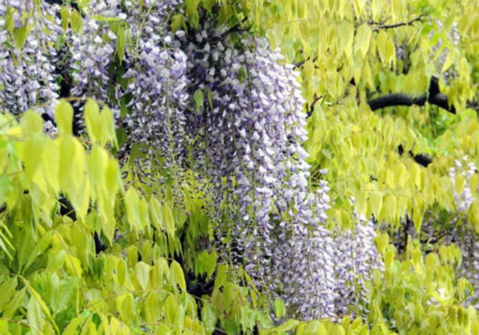 This deciduous, rounded shrub is hardy; its lacecap features inner flowers of deep blue and outer ray flowers of either blue or white. The flowers around the outside edge create an enchanting bloom. In Conservatory Garden, it can be found in the North Garden at Mumford Gate.