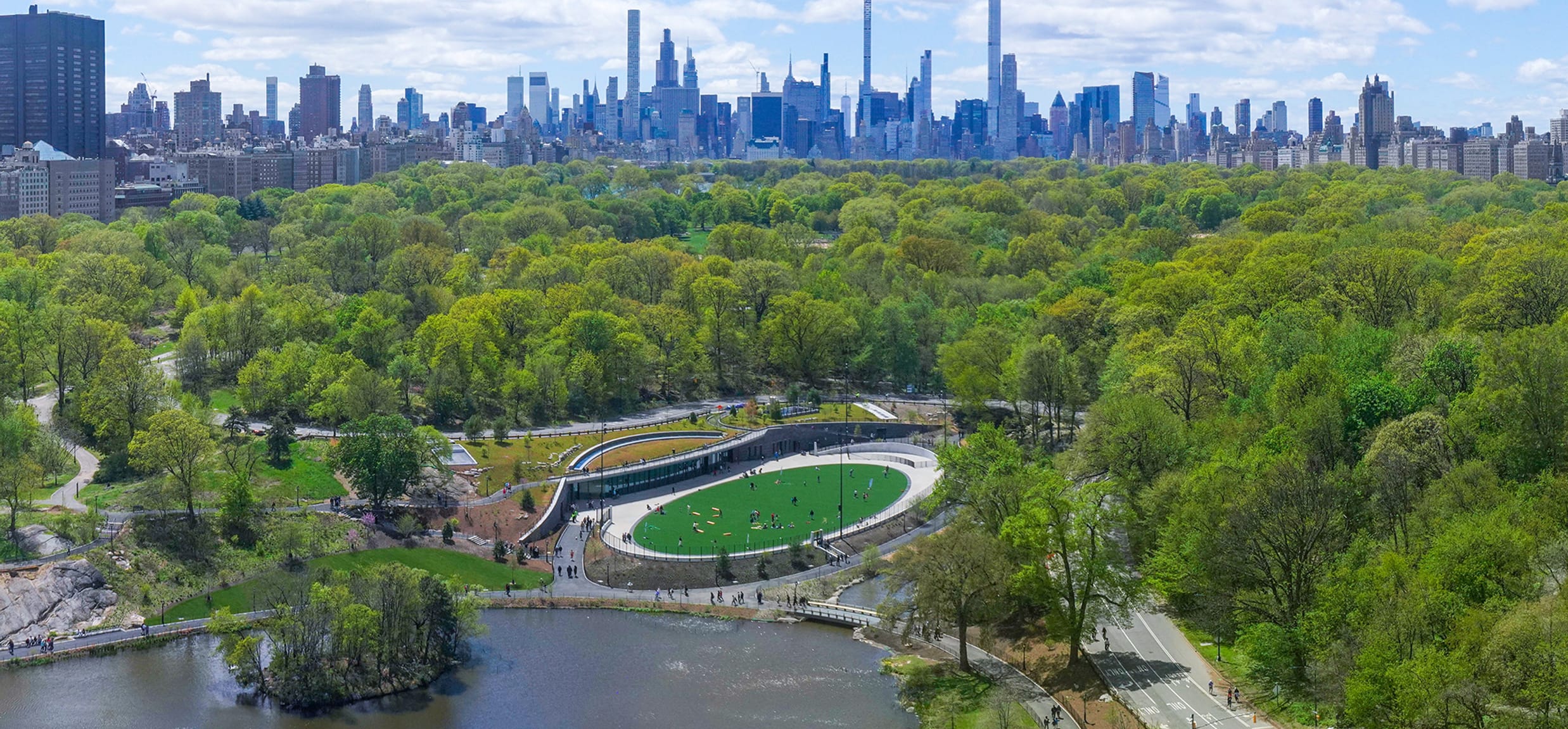 We rebuilt the former Lasker Rink and Pool to better integrate the facility into the landscape, offer new and enhanced outdoor activities, and increase access for communities around the north end of Central Park.